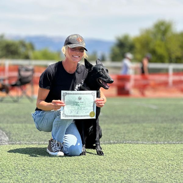 Recently earning her first decoy certification, Bella is continuing her path toward becoming a fully certified decoy and professional dog trainer. Her focus is on building confidence in both the dog and the handler—helping owners step into leadership with clarity and compassion while guiding dogs toward stability and trust.